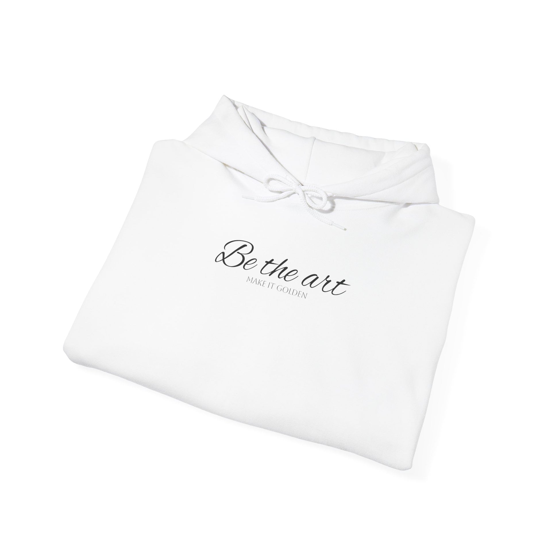 Soft, quiet, and a little fierce — this hoodie is for the person who wears their art on their sleeve. A clean white canvas in a relaxed classic fit, it drapes easily over sketchbooks, late-night coffee runs, and gallery wanderings. The front bears a delicate script whispering “Be the art,” while the back unveils a coiled dragon framed by cherry blossoms — a blend of grit and grace that reads like a personal mantra. Warm kangaroo pocket, double-lined hood, and a color-matched drawcord make it feel thoughtful in every detail. Wear it to studio sessions, chilly commutes, or when you need a calm, bold reminder to create.